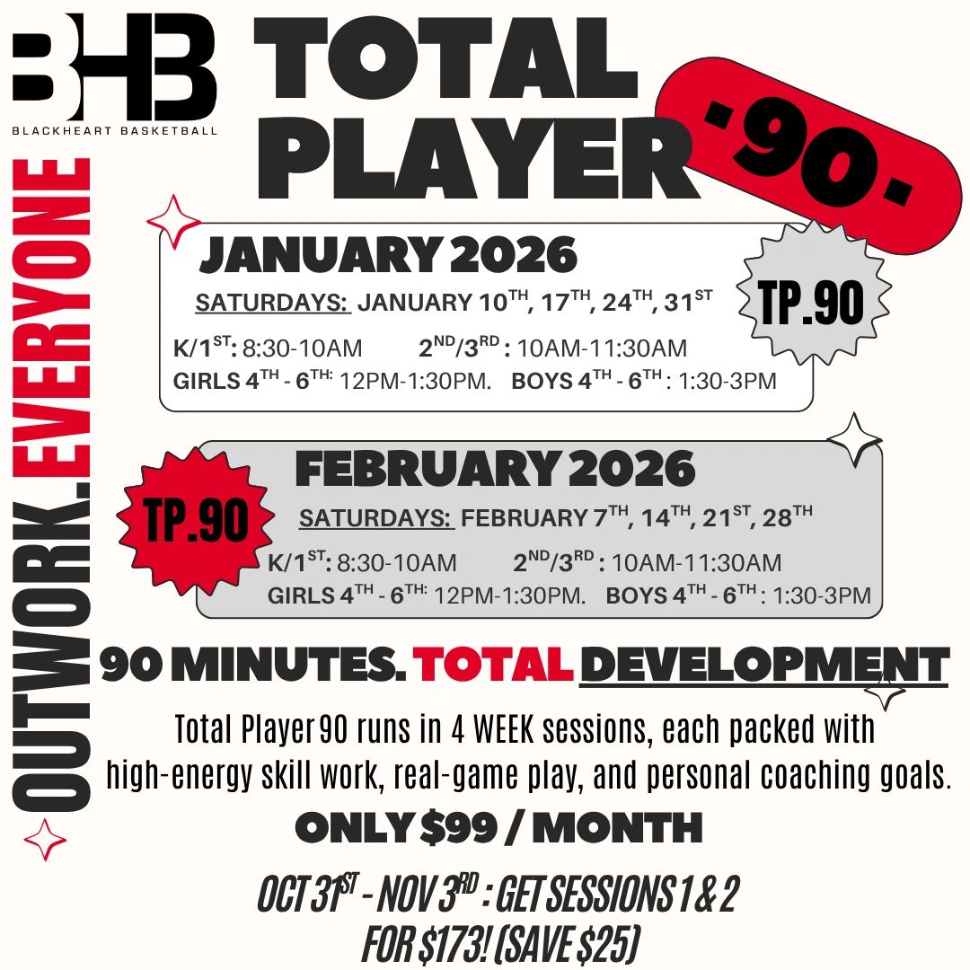 Players can expect a weekly, focused themes from our Total Player Training System, led by Lucious Wagner and BlackHeart training staff.